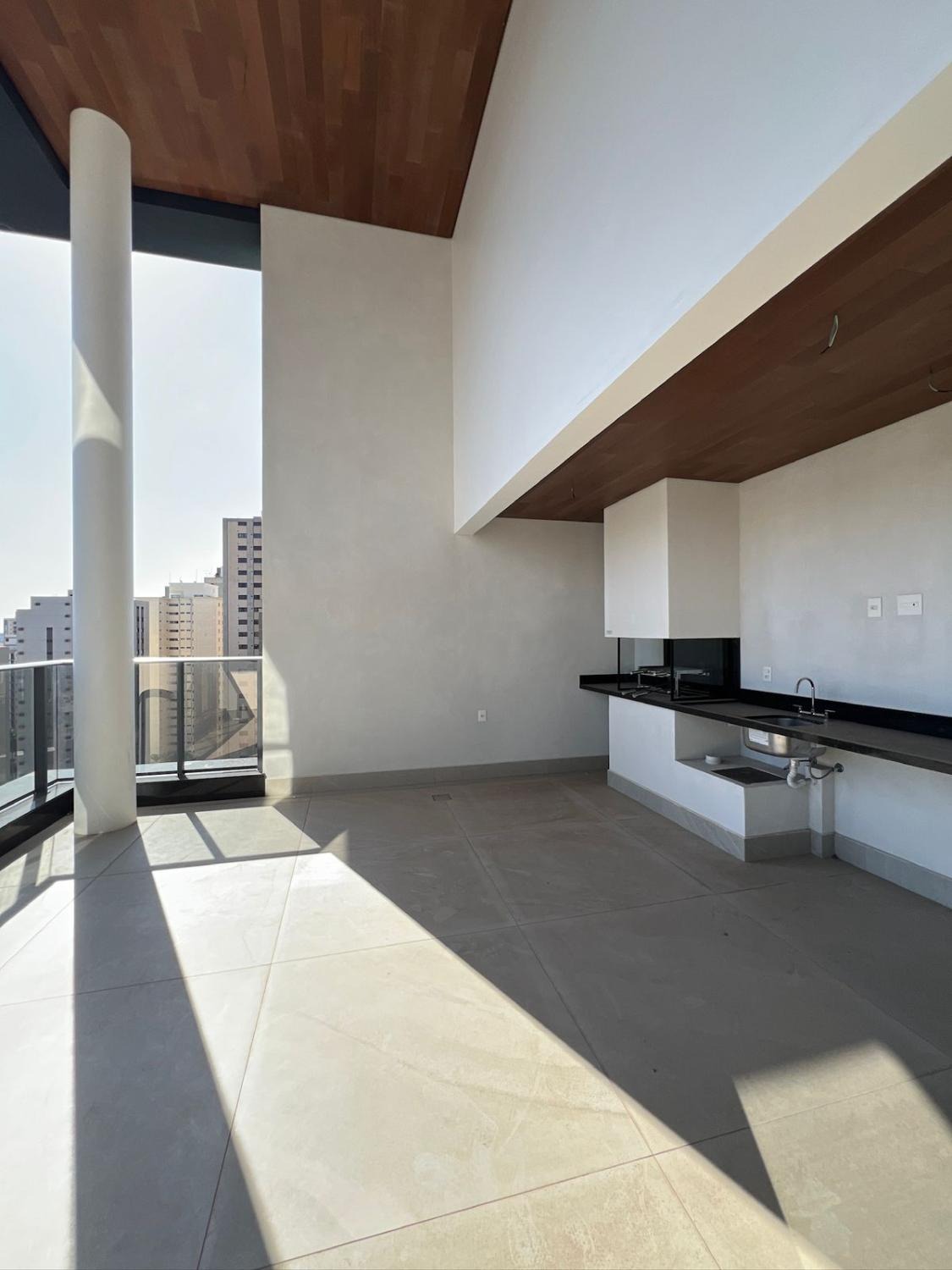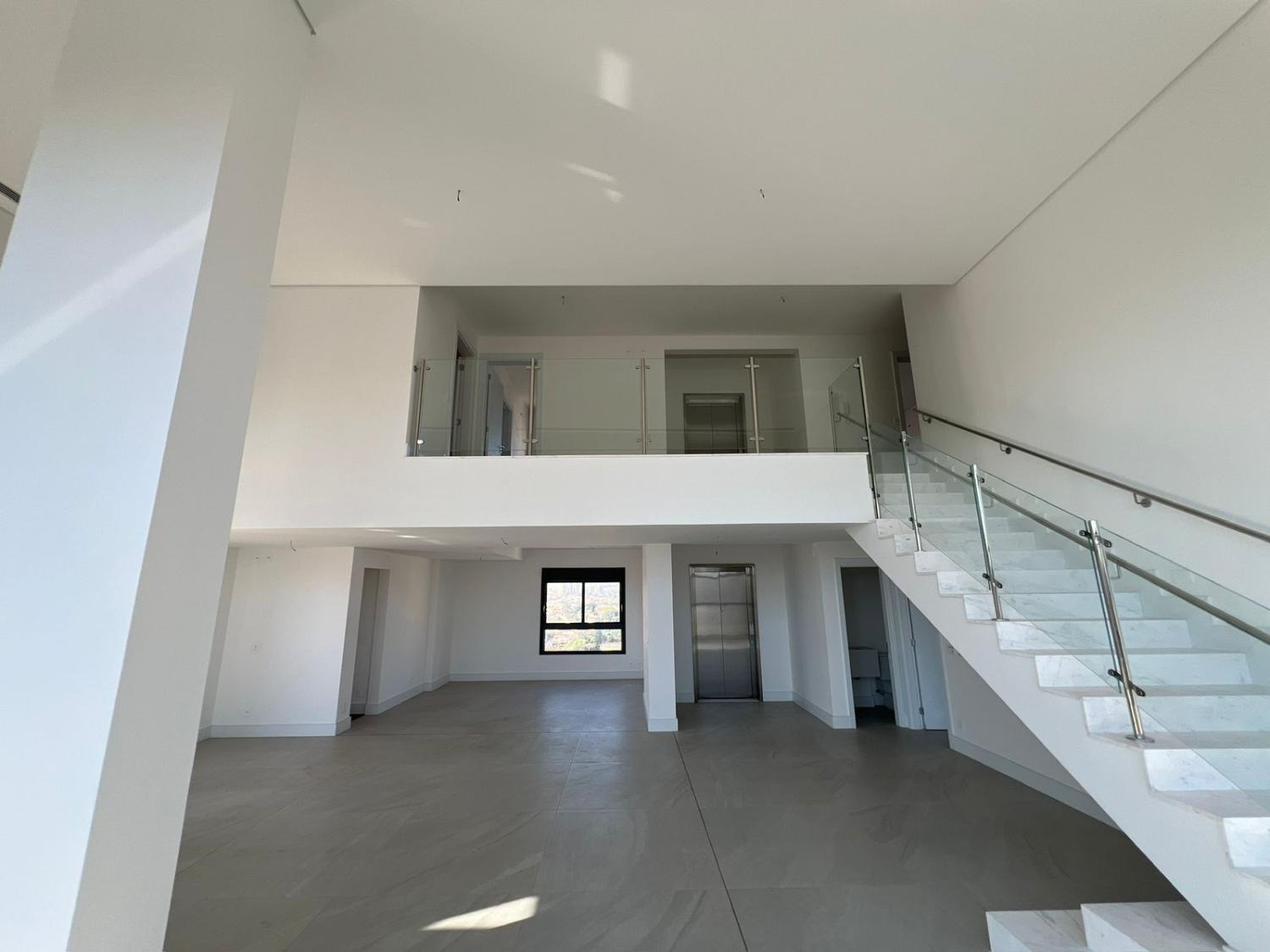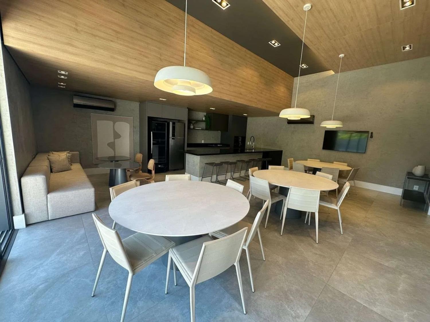 O pavimento inferior é dedicado à convivência e sofisticação. O living com pé-direito duplo cria uma atmosfera de imponência e liberdade, inundando o apartamento com luz natural através de imensas peles de vidro. A integração entre a sala de jantar, o home theater e a cozinha gourmet é fluida, culminando em um terraço cinematográfico com churrasqueira, ideal para recepções memoráveis com o skyline do Cambuí como pano de fundo.