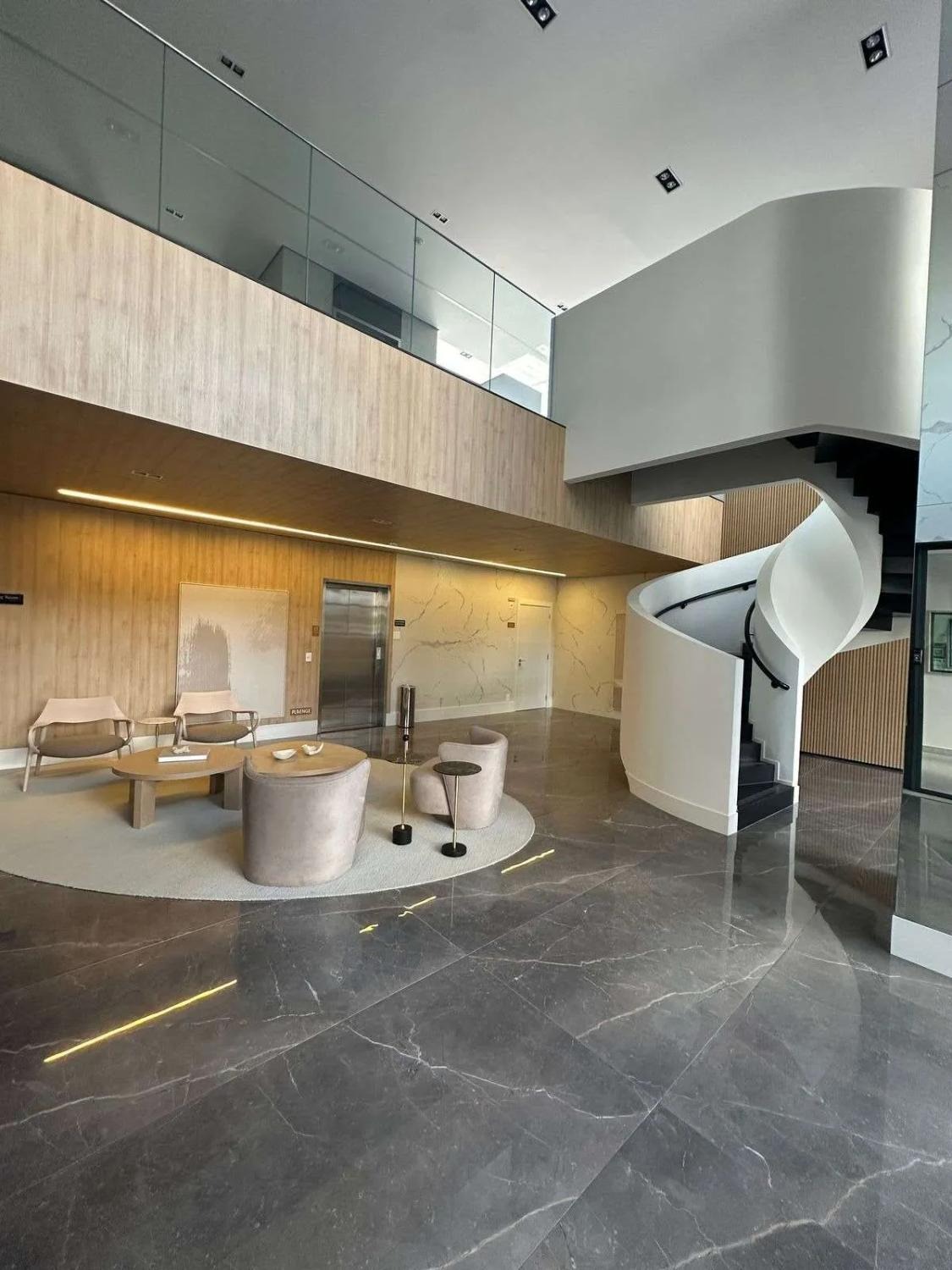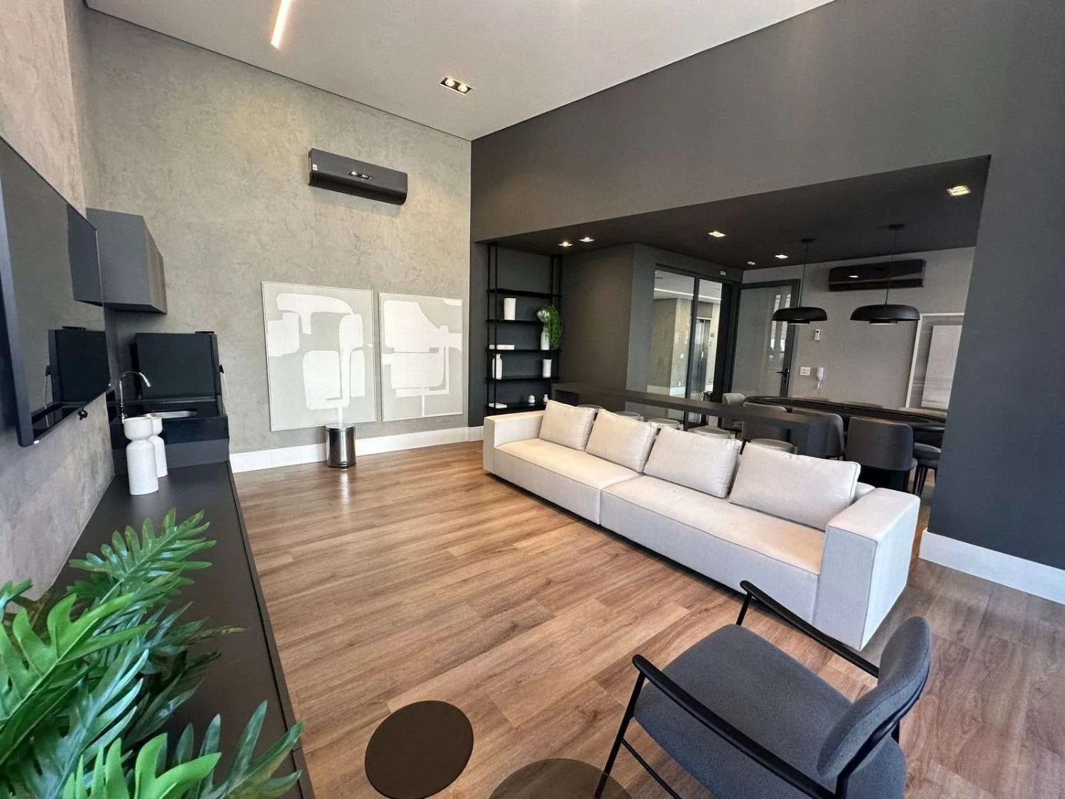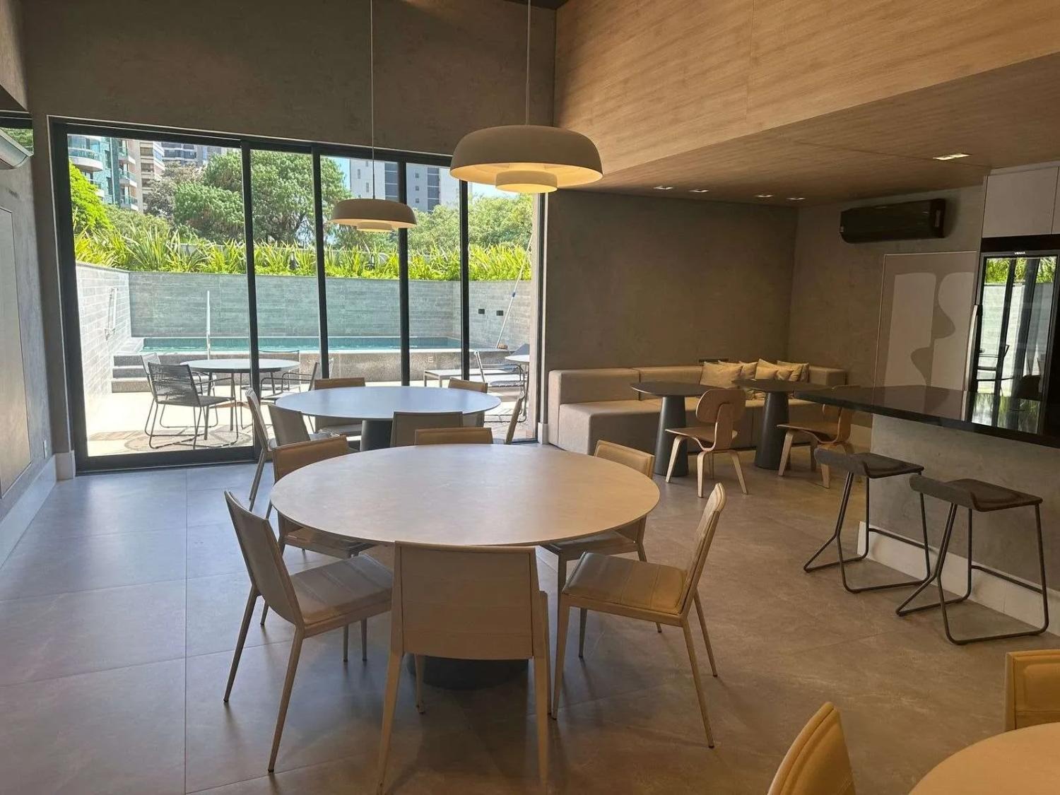 O pavimento inferior é dedicado à convivência e sofisticação. O living com pé-direito duplo cria uma atmosfera de imponência e liberdade, inundando o apartamento com luz natural através de imensas peles de vidro. A integração entre a sala de jantar, o home theater e a cozinha gourmet é fluida, culminando em um terraço cinematográfico com churrasqueira, ideal para recepções memoráveis com o skyline do Cambuí como pano de fundo.