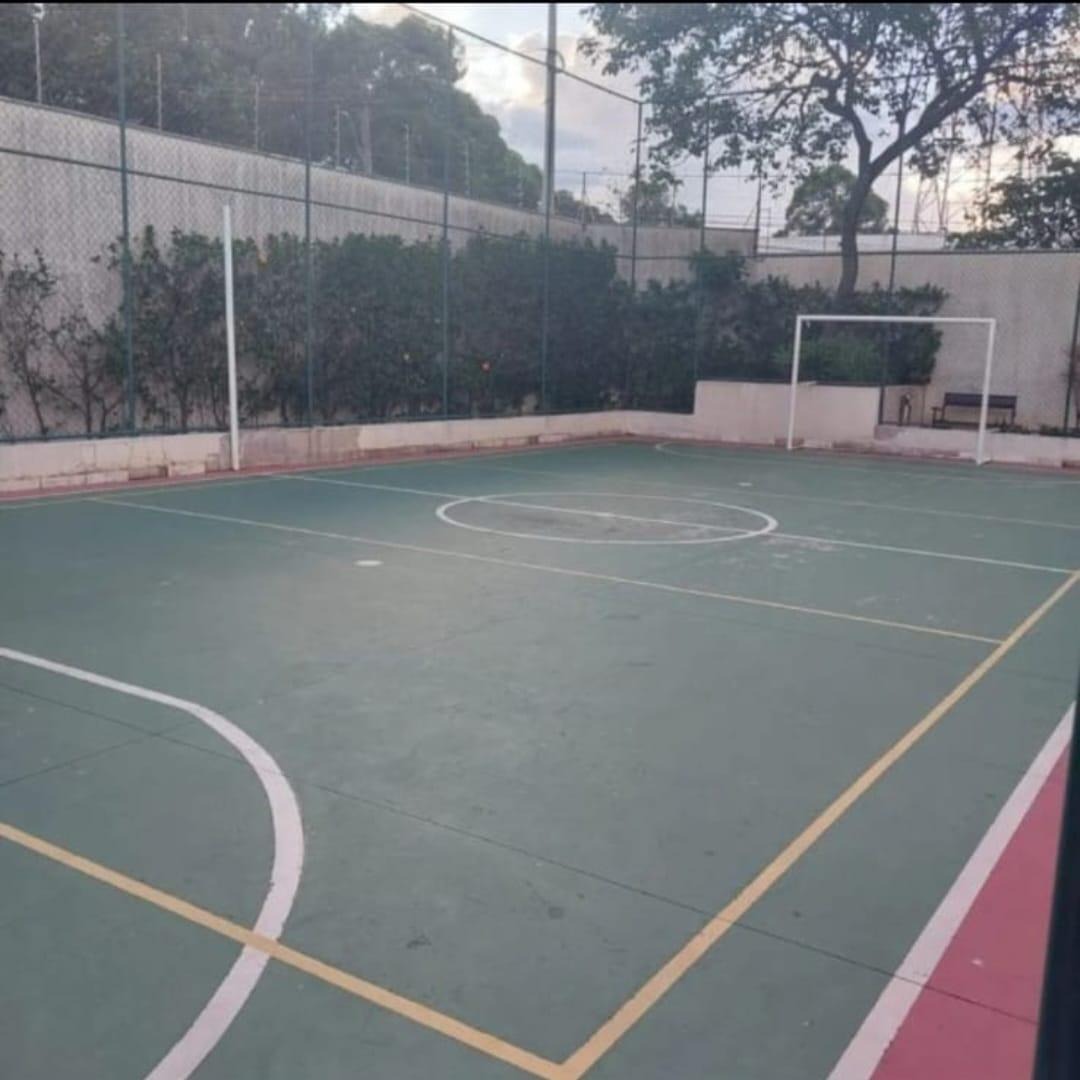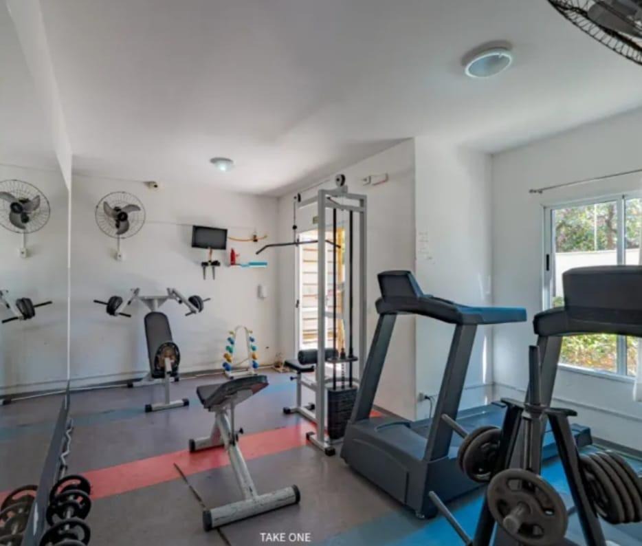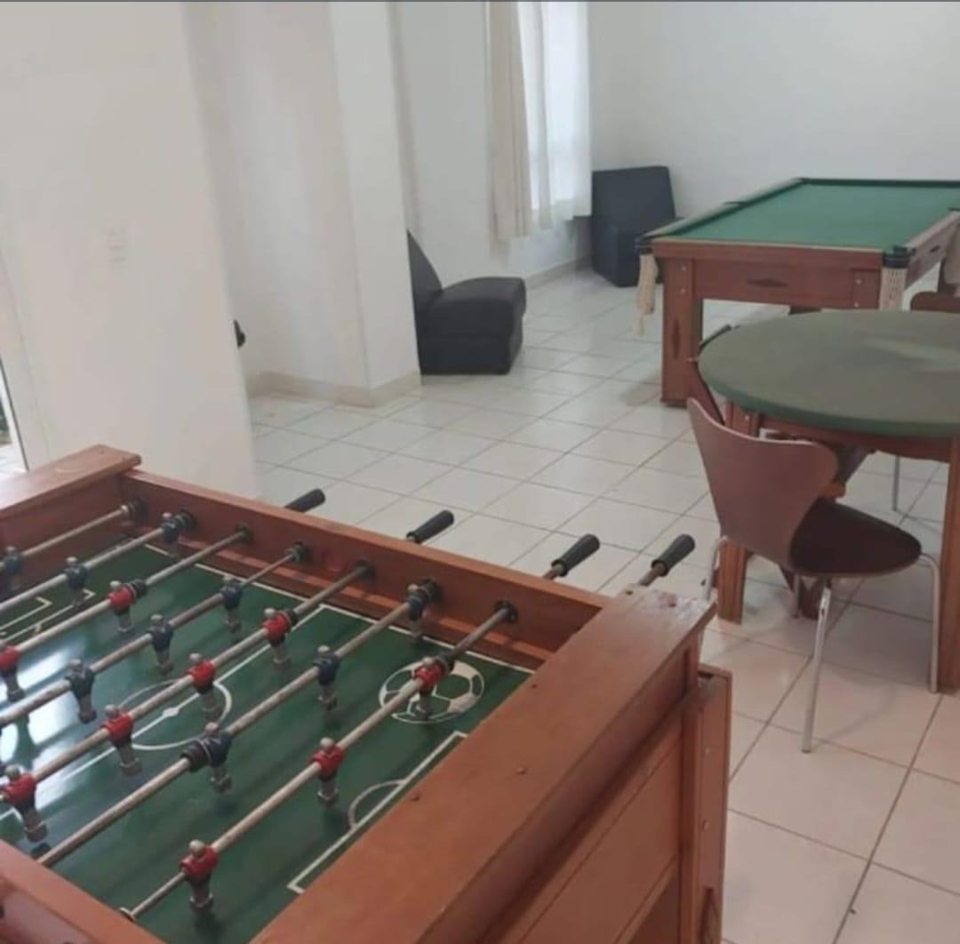 Condomínio com lazer como piscina, academia, quadra poliesportiva, sala de jogos.