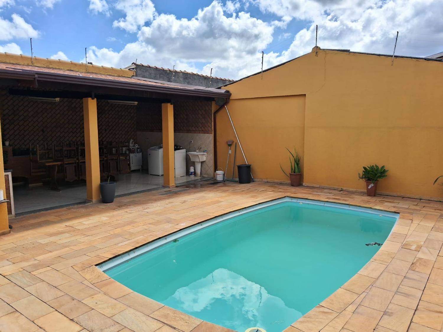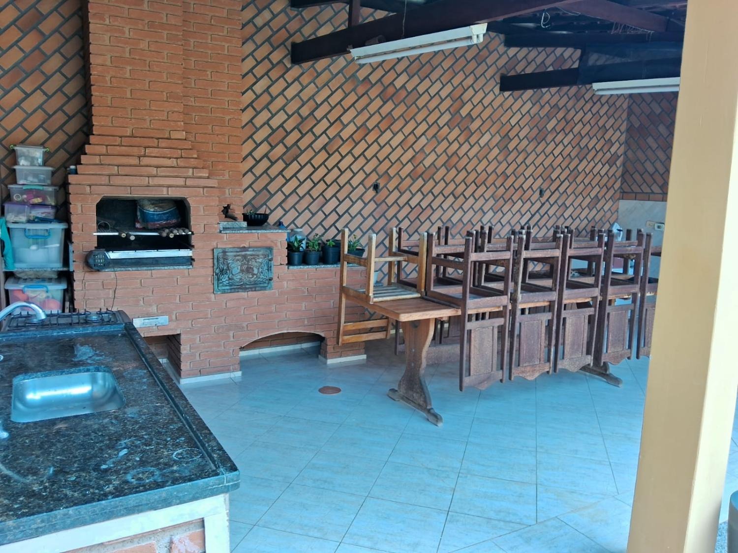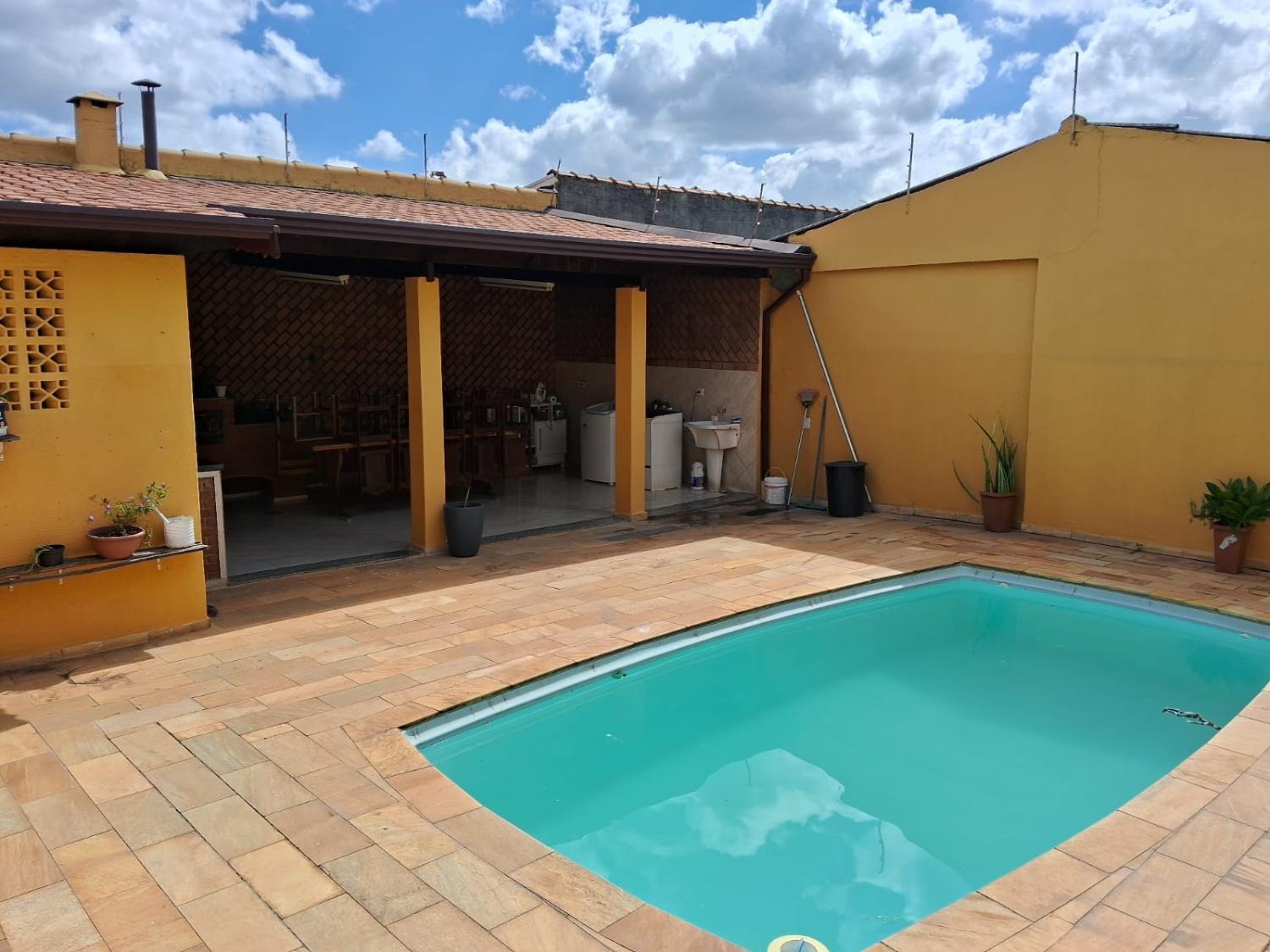 Cômodos amplos, área de serviço coberta, quintal, 3 vagas de garagem com portão eletrônico, sistema de segurança, piscina, sauna, fogão a lenha e churrasqueira.