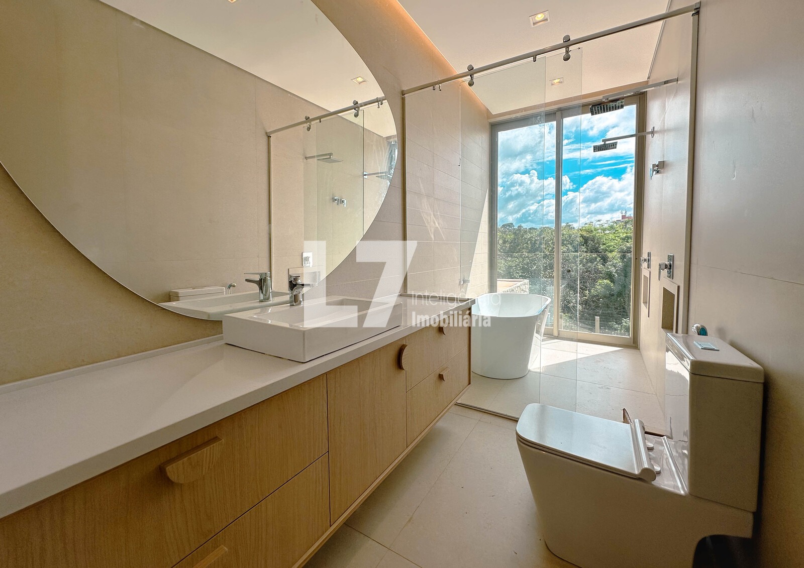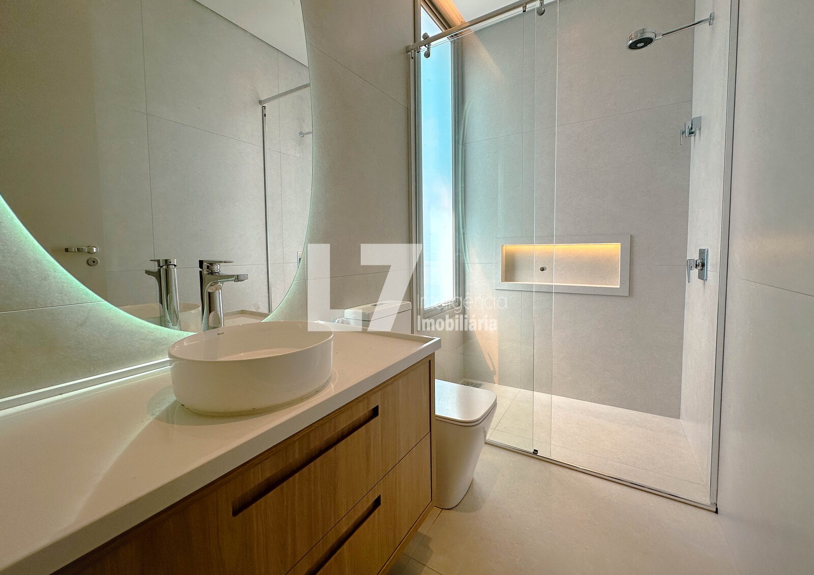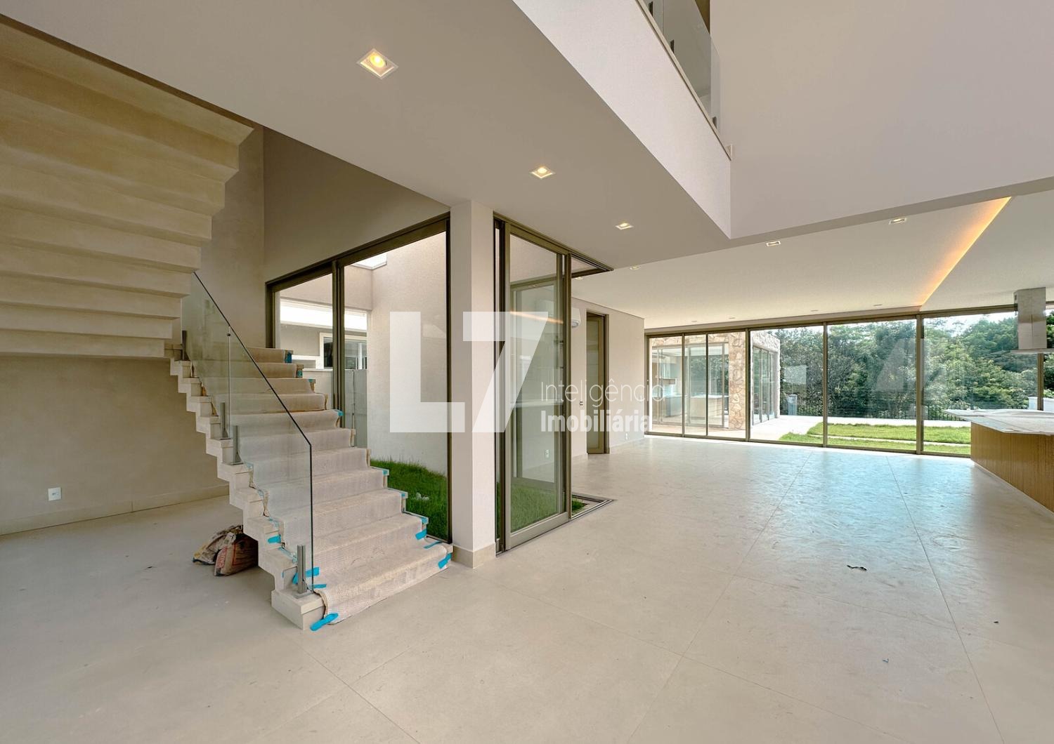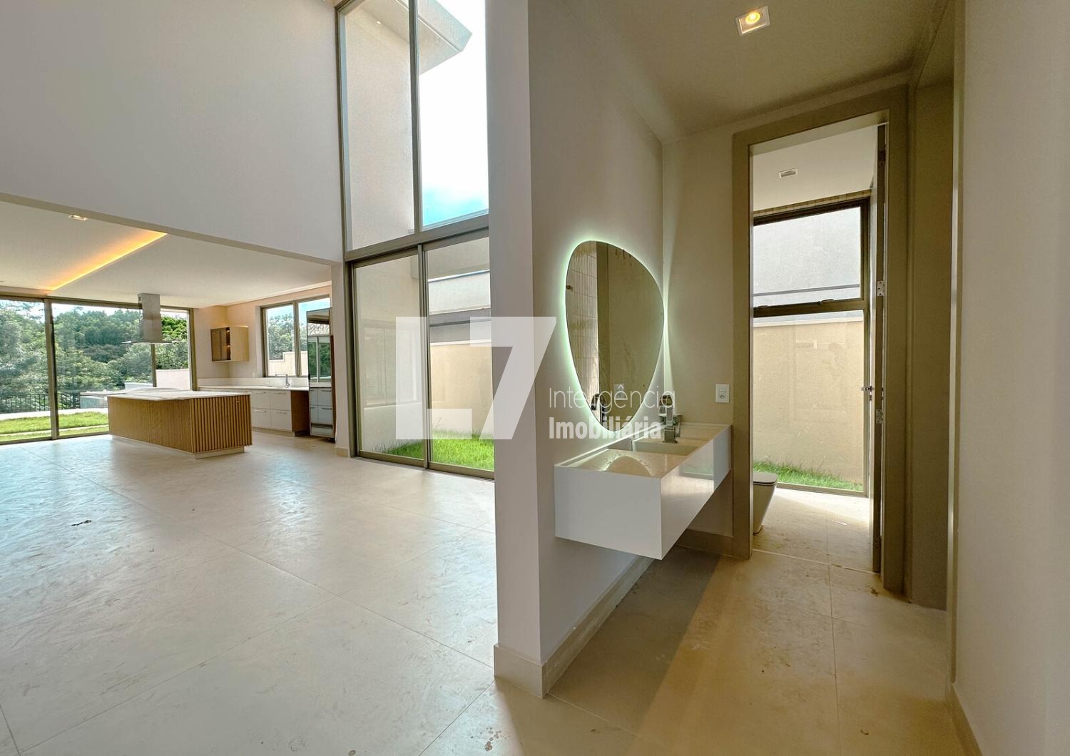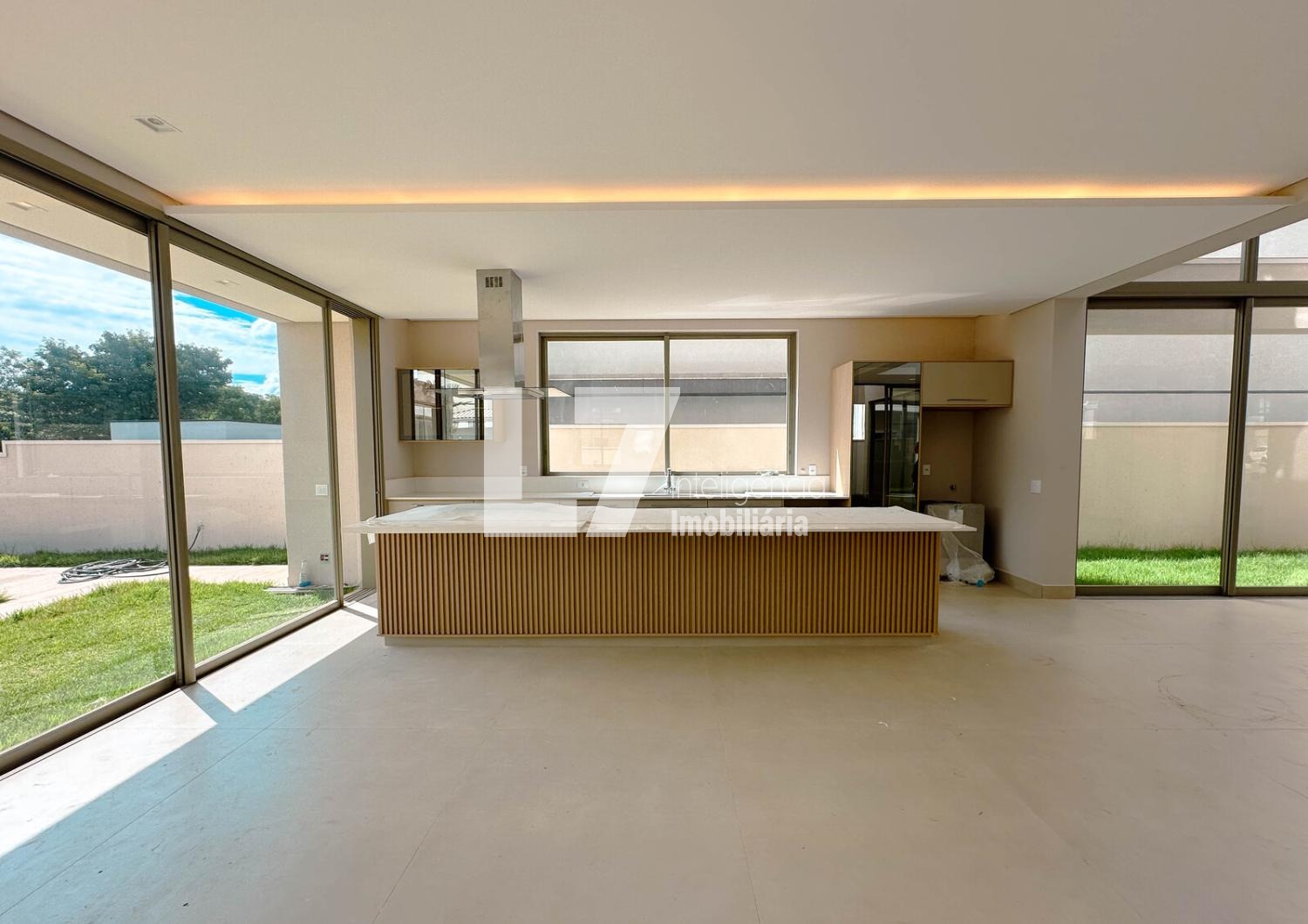 A área social foi pensada para integração e elegância, com ambientes amplos e bem iluminados. A área gourmet será equipada com fogão, cooktop, micro-ondas e forno elétrico, além de marcenaria planejada no espaço gourmet e lavanderia. Todas as bancadas serão em quartzo stone, reforçando o padrão premium do imóvel. A casa contará ainda com ar-condicionado e iluminação em todos os ambientes, além de infraestrutura completa já instalada.