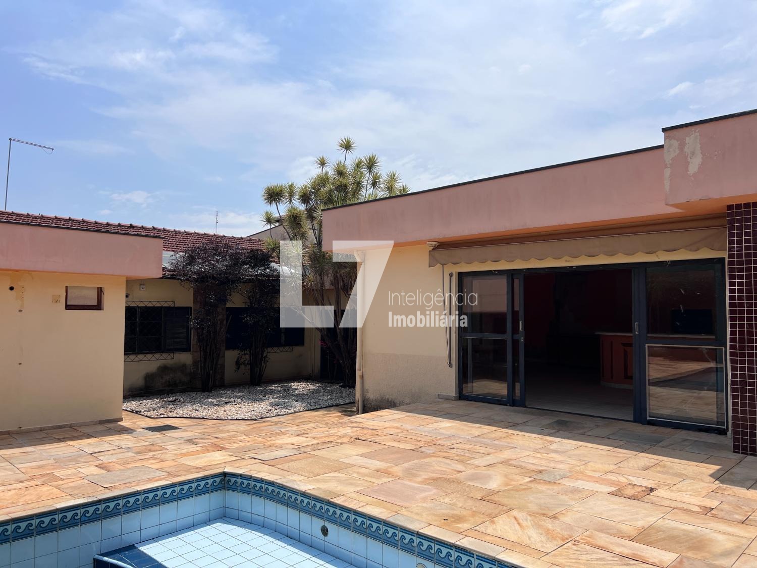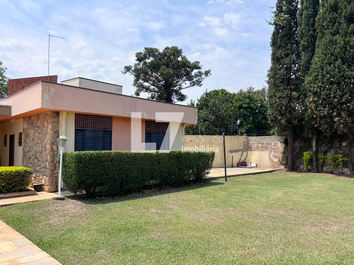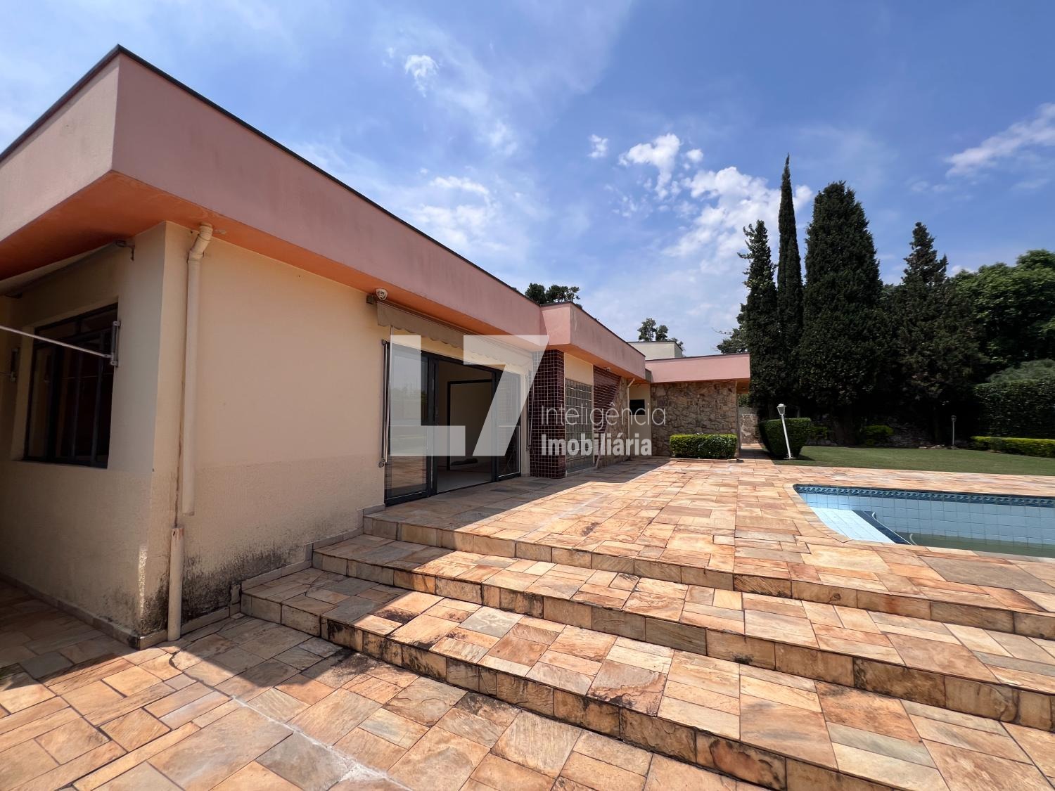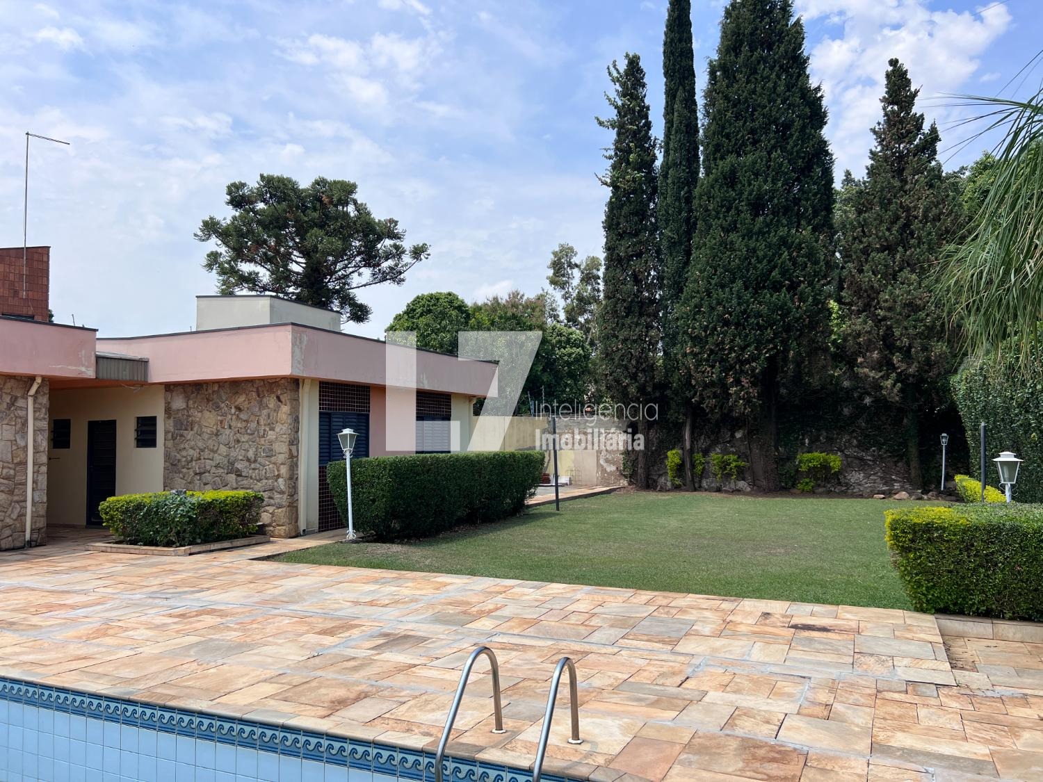 O imóvel possui terreno com mais de 1.000 m², oferecendo um amplo quintal gramado com jardim e área de lazer com piscina. A casa principal conta com 4 dormitórios, 3 banheiros, sala de estar espaçosa, cozinha e lavanderia com banheiro de serviço. A área de lazer coberta dispõe de um salão amplo, banheiros adicionais e churrasqueira, ideal para diversas finalidades comerciais.